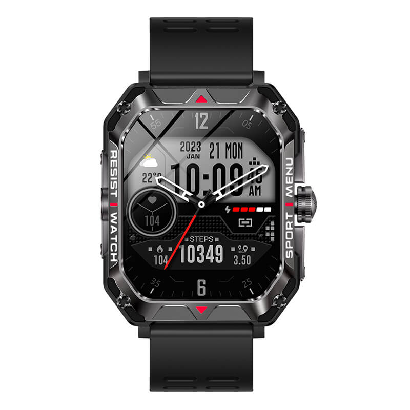 The rugged smart watch is equipped with a 2.02-inch 320*386 full-touch HD retina screen is more smoother, silky and agile, and it will fully pleasure your fingertips. You can check the time without lifting your wrist, even under strong light all the important information such as incoming calls, reminders, sports, etc. can be clearly displayed. The new design of the dial is online, allowing the watch to present more options. Long press to switch surfaces and switch styles as you wish.