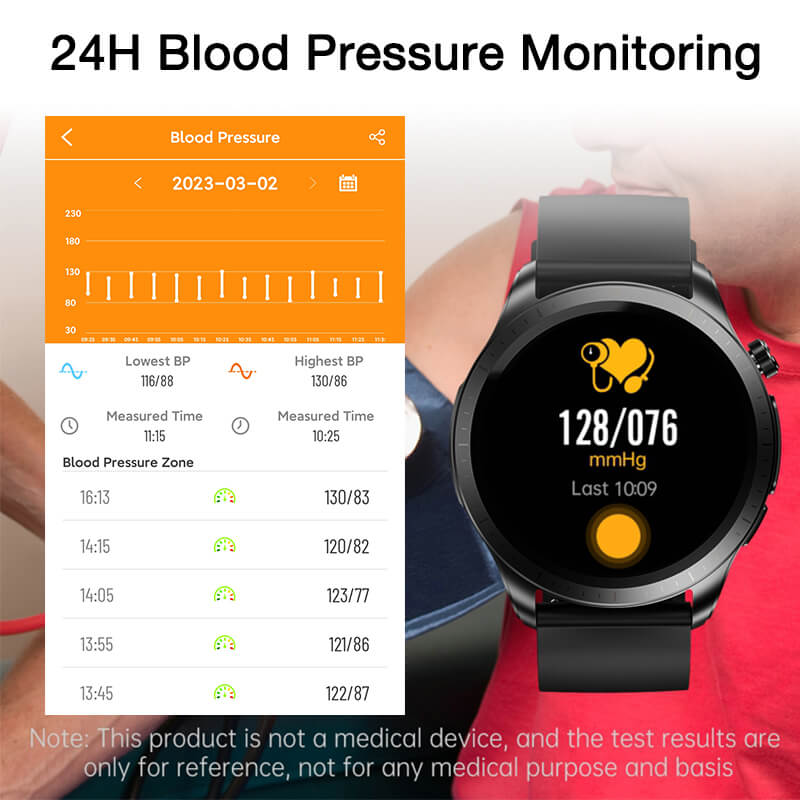 You can easily measure your blood pressure between your wrists and know your blood pressure health at any time. One-click operation, real-time display of measurement results. (This product is not intended for medical use, all data is provided for reference only.)