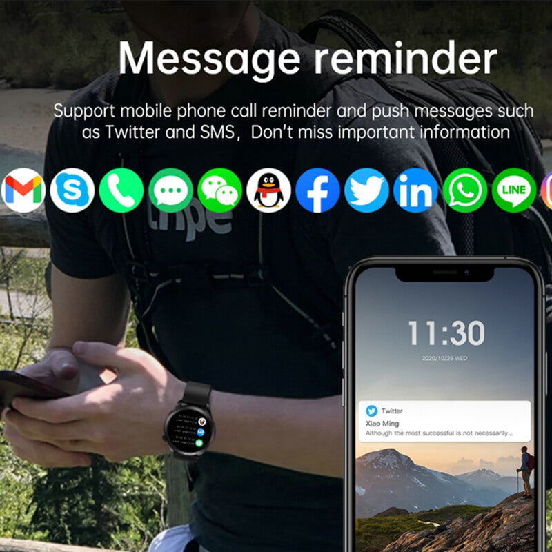 Smartwatch that detects afib supports 10 sports modes such as mountaineering, cycling and swimming, and can monitor the sports center rate, distance. lmportant data such as speed and heat consumption can help you explore a larger world and constantly expand your boundaries.