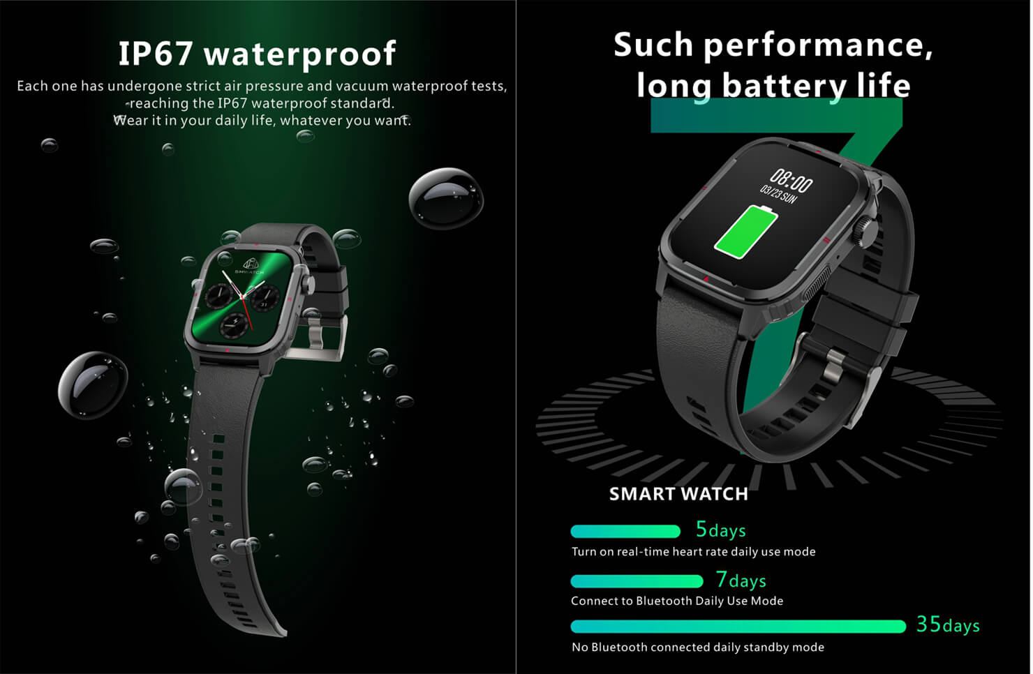 Suitable for daily use with the IP67 waterproof smart watch, not for swimming or soaking in water. It resists rain and a small amount of splashing from washing your hands and face.
