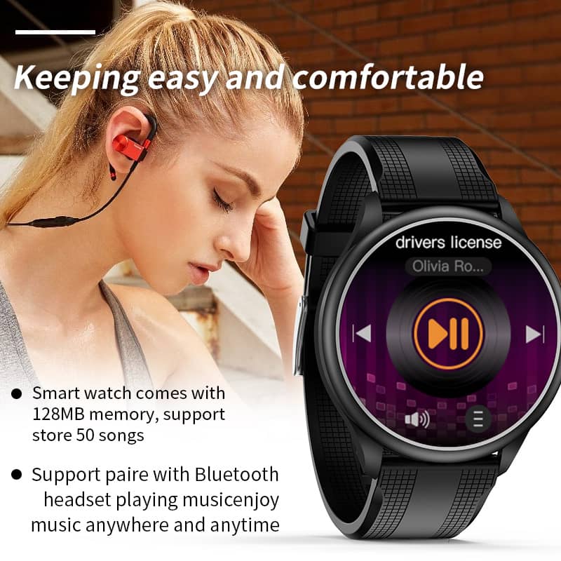 The smart watch has a huge memory of 128MB for music support 50 songs and you can convert your favorite songs from your phone to your watch. Wireless headphones can be connected to switch to music stored in the watch. You can use a Bluetooth connection on the watch to control the sound of music playback and tones.