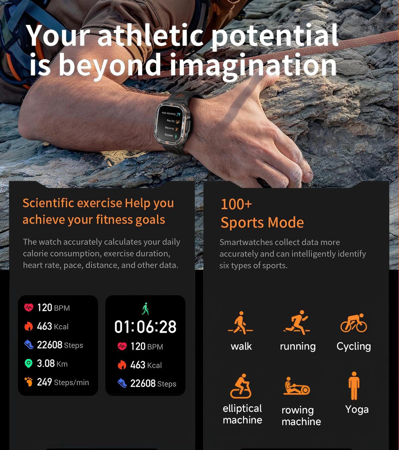 • 🏃 [100+ Sports Modes & Scientific Fitness Tracking]Train smarter with 100+ sports modes including running, cycling, hiking, and gym workouts. Accurately tracks calories burned, workout duration, heart rate, pace, distance, and more—helping you optimize every session. 💪