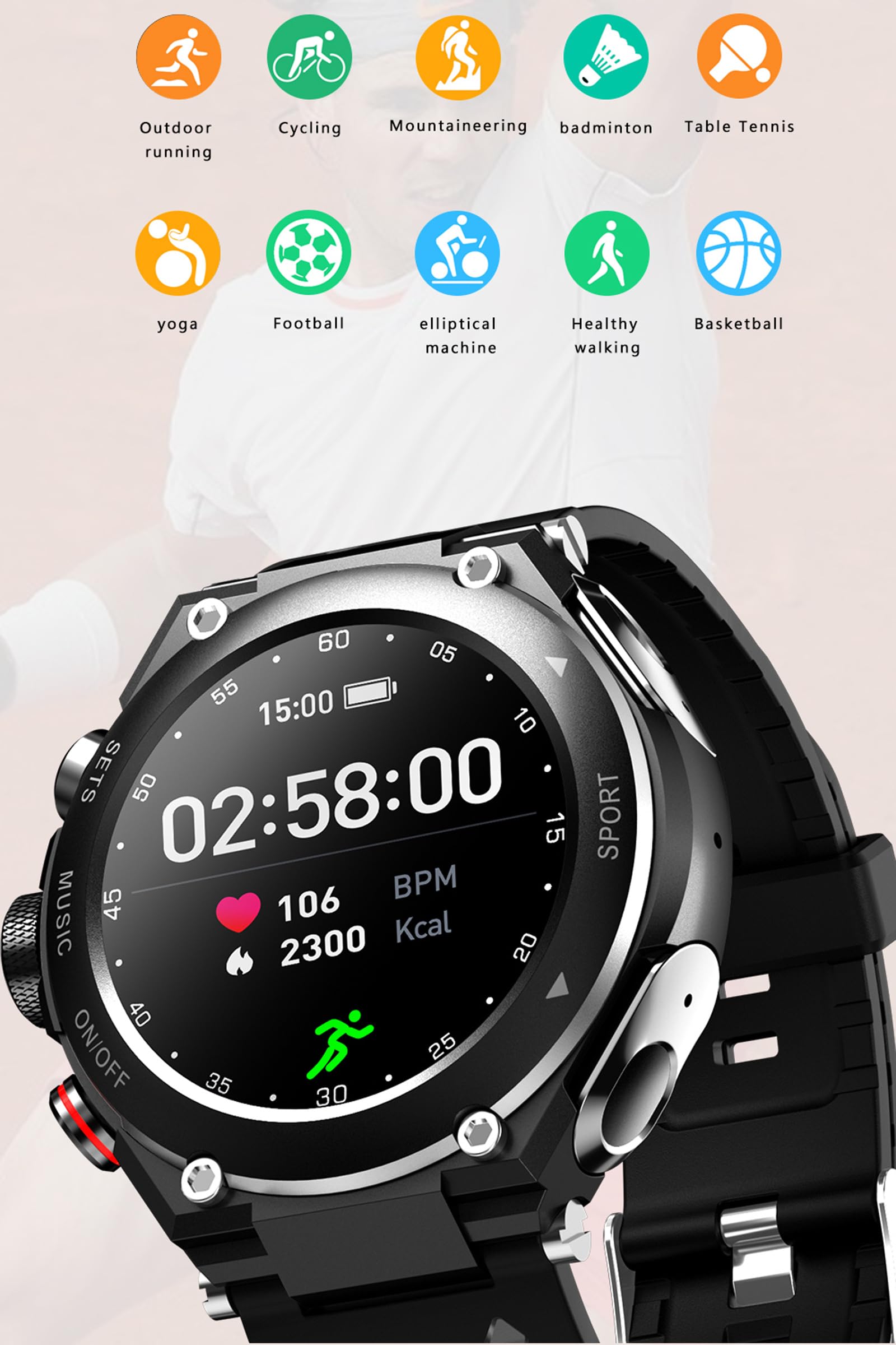 - 【The Watch Can Play Music Independently Without Connecting to Bluetooth Device】 - 128M memory, music copy storage 100+ songs, which can be played directly or connected to Bluetooth headset.Perfect for daily activity tracking, call and enjoy music while driving or working. Wireless stereo sound quality