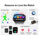 1.69" HD large touch screen equipped with 240*280 pixel resolution can provide you with a clearer visual experience. This watch has several built-in new dials, including a variety of dynamic dials. In addition, the dial market has more personalized dials for you to choose from. Not enough? Then turn the photos you took and your favorite beautiful pictures into dials, put the world in your dials, giving you a new experience every time you wake up the screen.