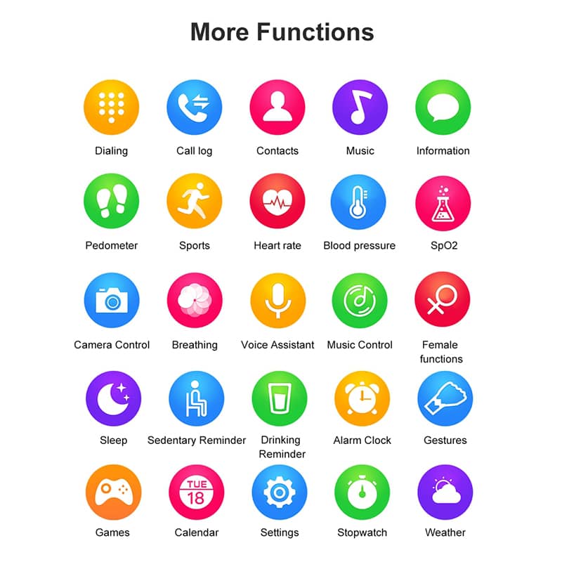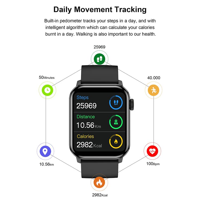 This smart watch can contact with others when you have a phone call by Bluetooth directly. After you connect your smartwatch to your phone, you can make calls directly, using the installed microphone and loudspeaker. When a call comes in, choose to answer or reject it. When you are working out or doing housework, you can talk by raising your hand.