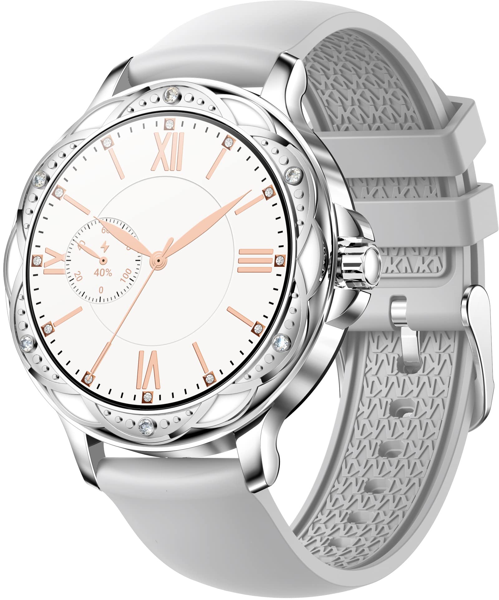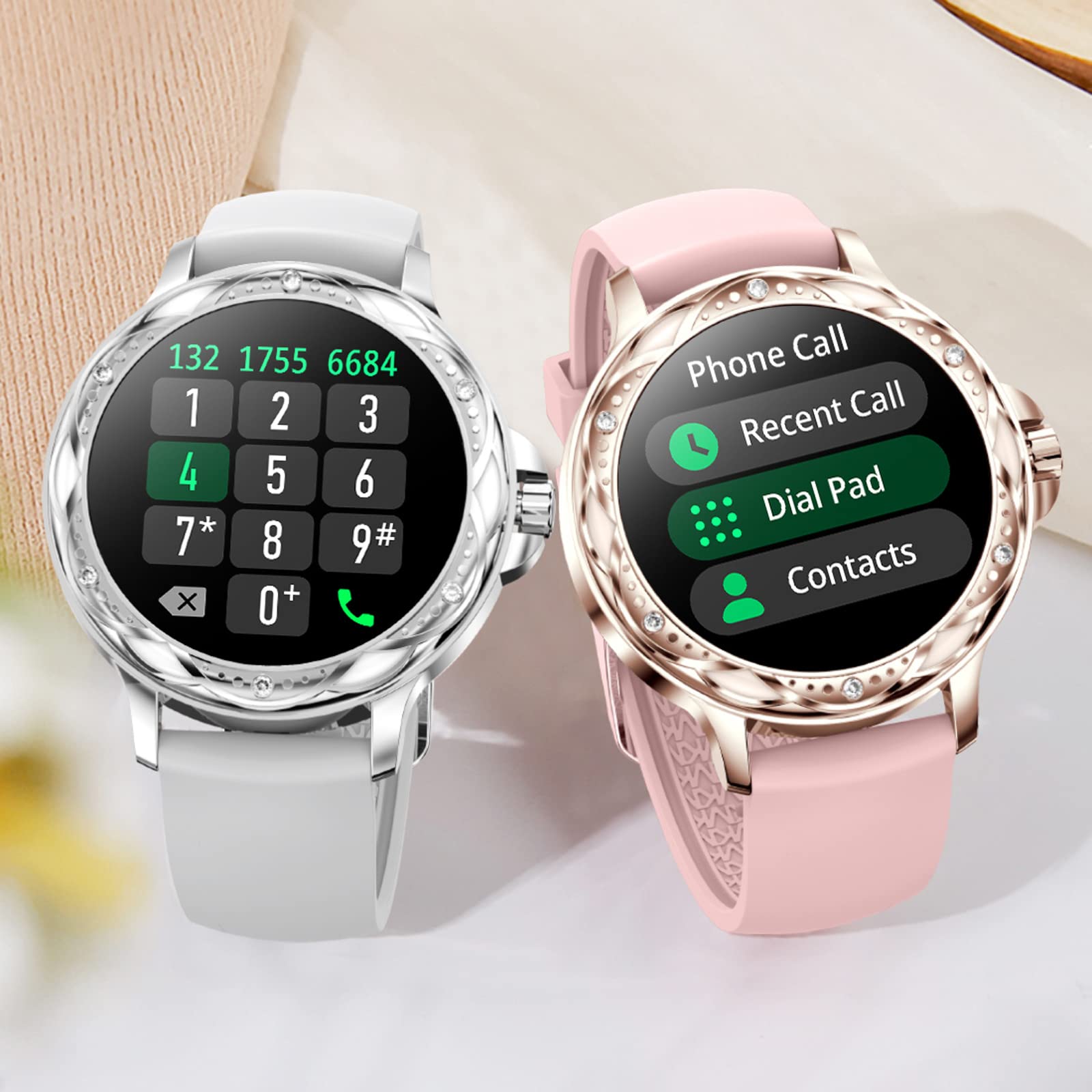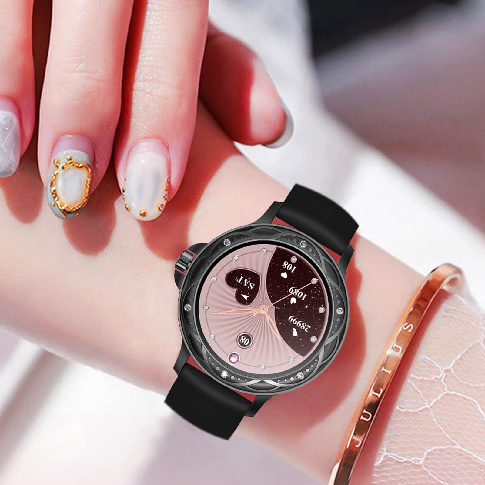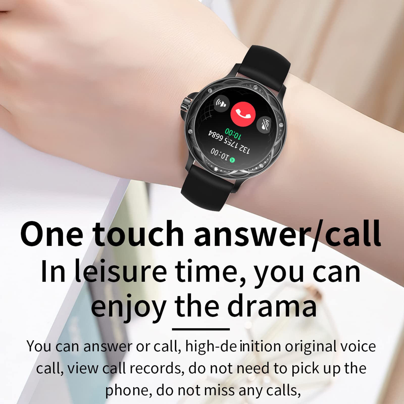 - 💗 【Women's Elegant Smart Watch】- The diamond inlaying of the watch ring is like the moon, like flowers, like petals. 1.2" HD full touch color screen, so that all contents can be displayed wonderfully, showing the beauty of lady.