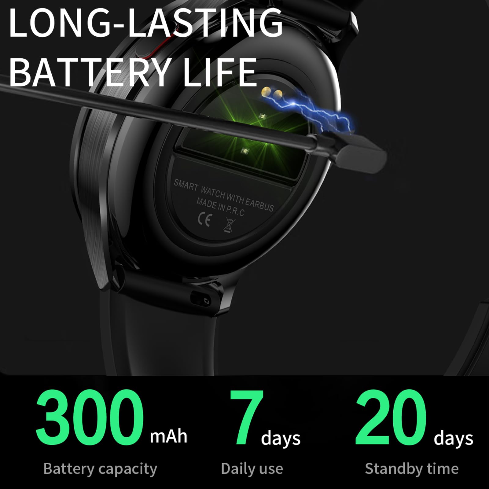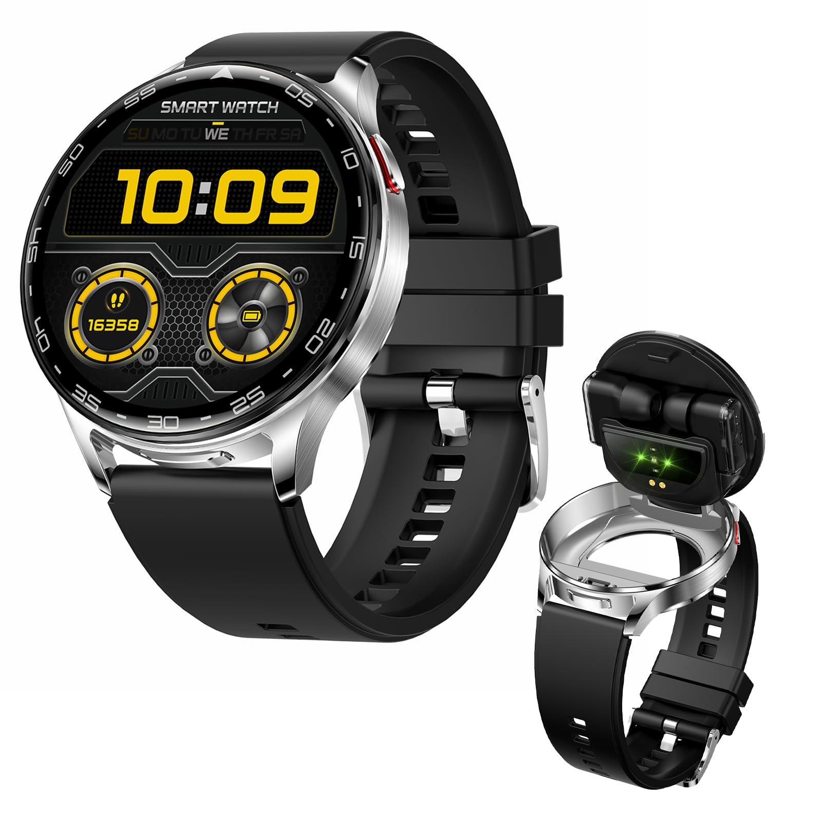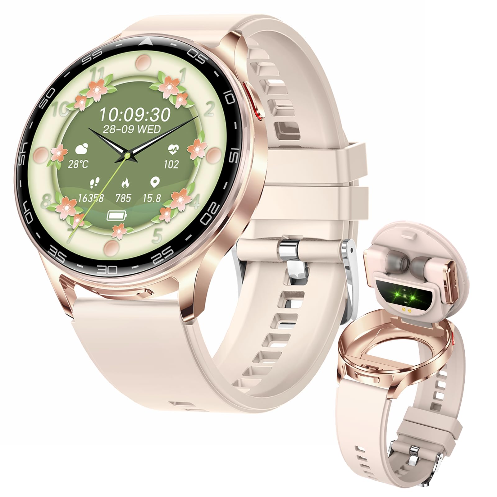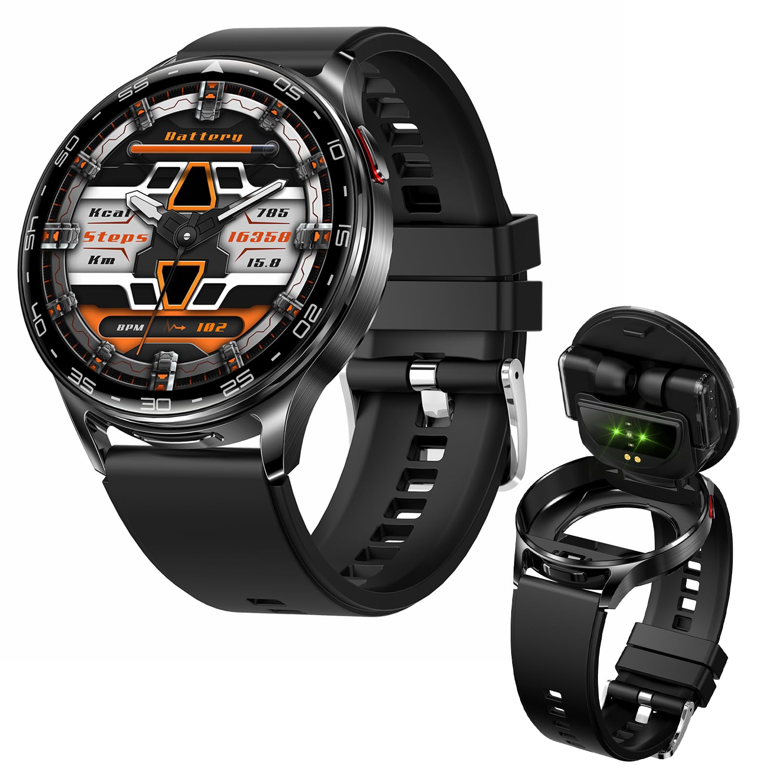 - 2-in-1 Smartwatch with Built-in Earbuds:The watch includes detachable wireless earbuds stored and charged in the body. Enjoy music or calls anytime without carrying extra cases.