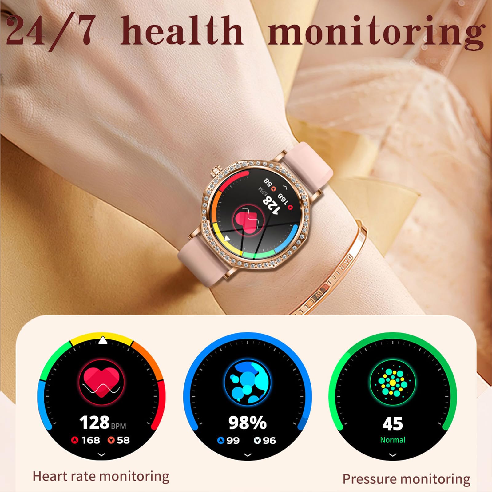 • 1.32 inch Smart Watches for Women with Fitness Trackers with Full Touch Colorscreen Compatible with Android 4.4, iOS 9.0 and above