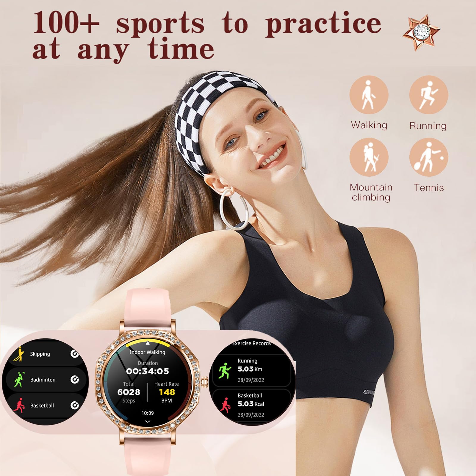 Smart Watches for Women Fitness Tracker Fitness Watch with Multiple Sport Modes Heart Rate Sleep Monitoring for Android iOS