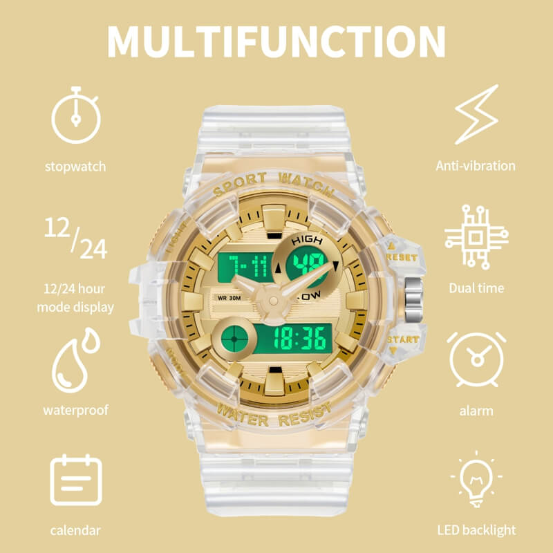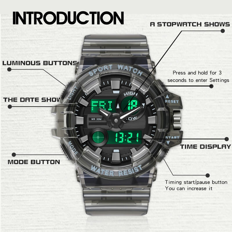 Findtime Military Digital Watch for Men Tactical LED Large Face Transparent Design Outdoor Sport Watch Stopwatch Alarm Waterproof
