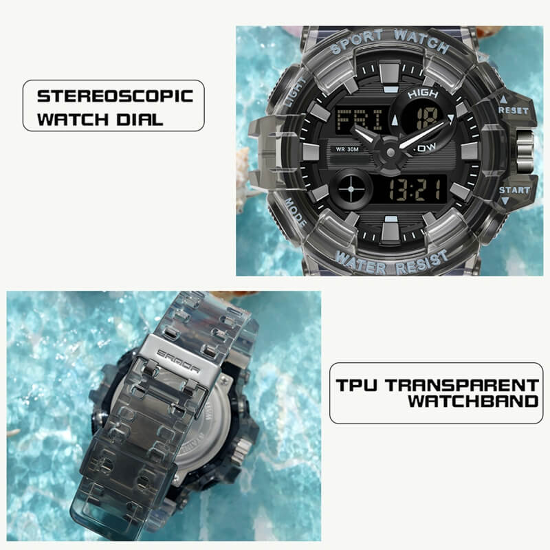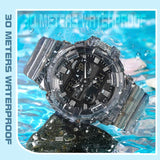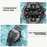 - 【High Quality Mens Watch】Imported movement and battery,shockproof and drop resistant design.Long battery life and precise timing.Unique transparent case and strap stand out from the crowd.Sports watches for men,stopwatch and chronograph display functions are very suitable for outdoor.Big watch face is easy to read.