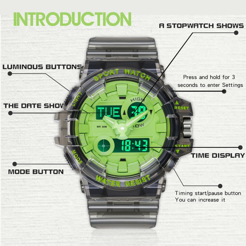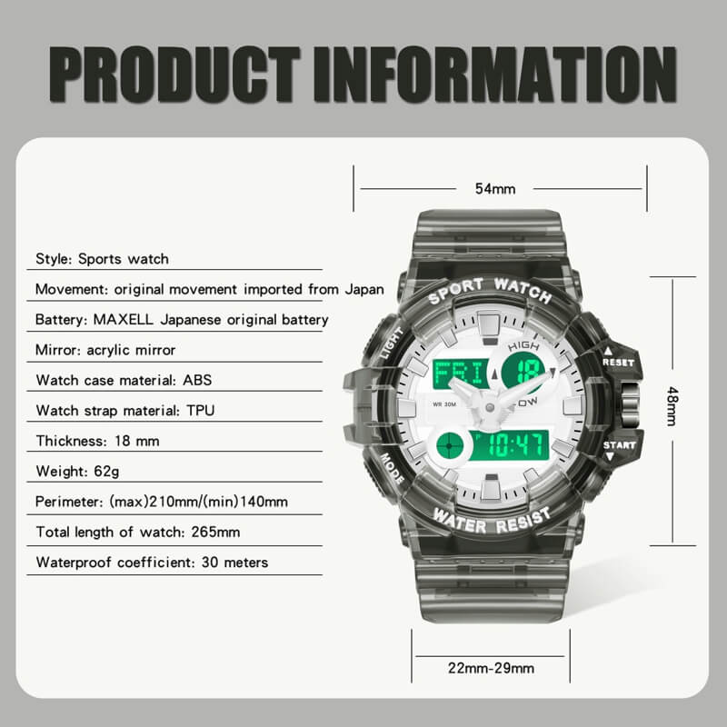 - 【Fashionable Sport Watch for Men】This digital watch strap and case are made of high-quality resin,large dial is comfortable to wear.Large watch case with acrylic mirror,Dial Case Diameter:54mm(2.13"),durable,wear-resistant and scratch-resistant.Whether it is running,hiking,climbing,etc.,it is very suitable for outdoor sports.