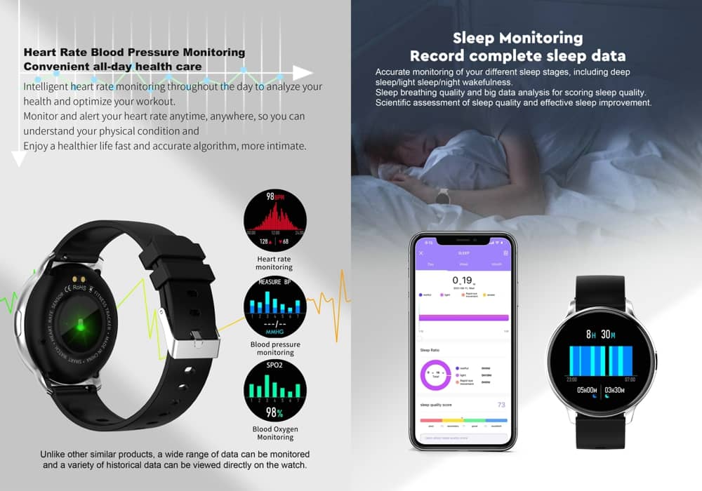 How about your sleep condition? This fashion smart watch with sleep tracking make you refreshed and meet new challenges. It can monitor the deep sleep, light sleep and wake up time through check the sleep trend from the APP. Help you improve your sleep habits and get better sleep.