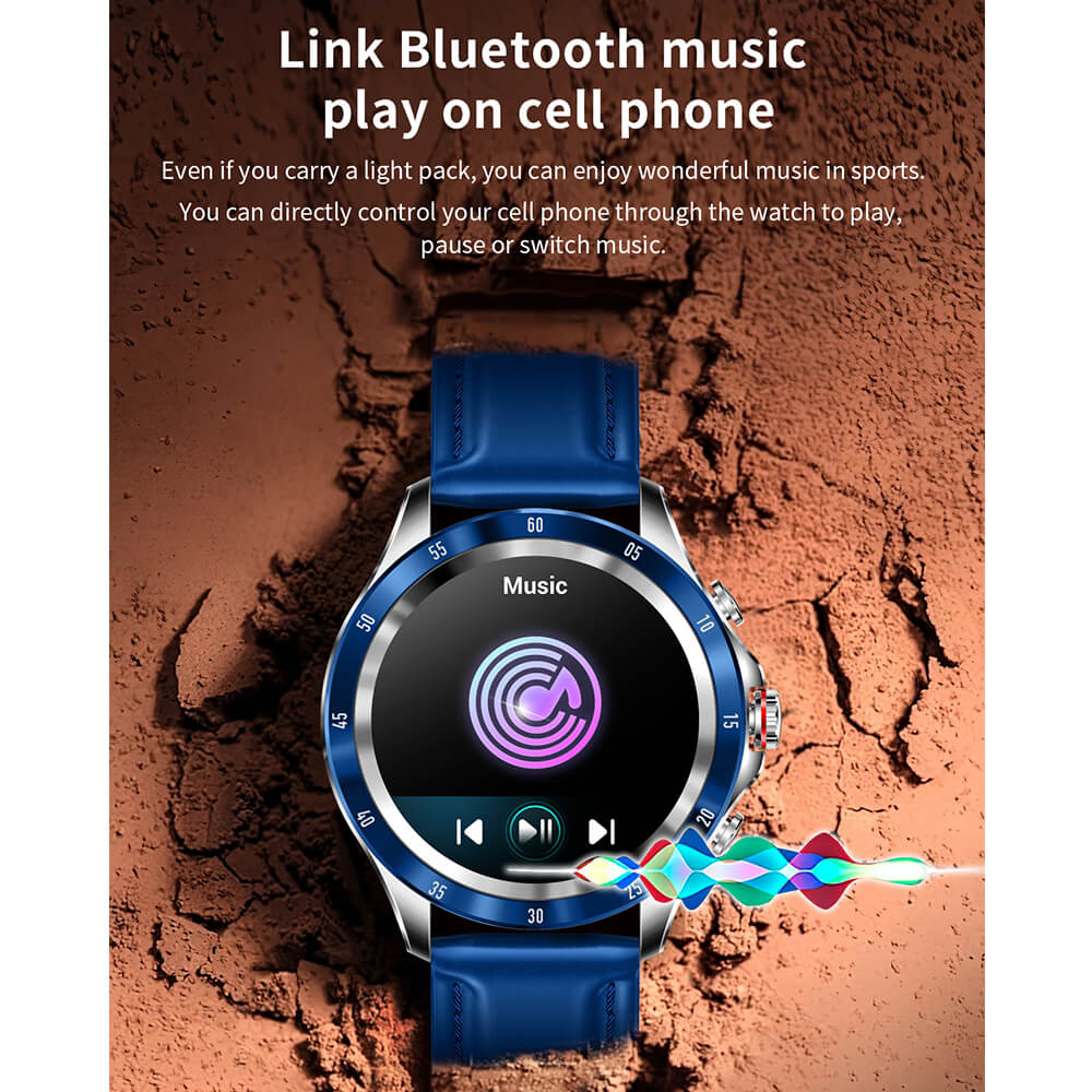This smart watch can contact with others when you have a phone call by Bluetooth directly. After you connect your smartwatch to your phone, you can make calls directly, using the installed microphone and loudspeaker. When a call comes in, choose to answer or reject it. When you are working out or doing housework, you can talk by raising your hand.