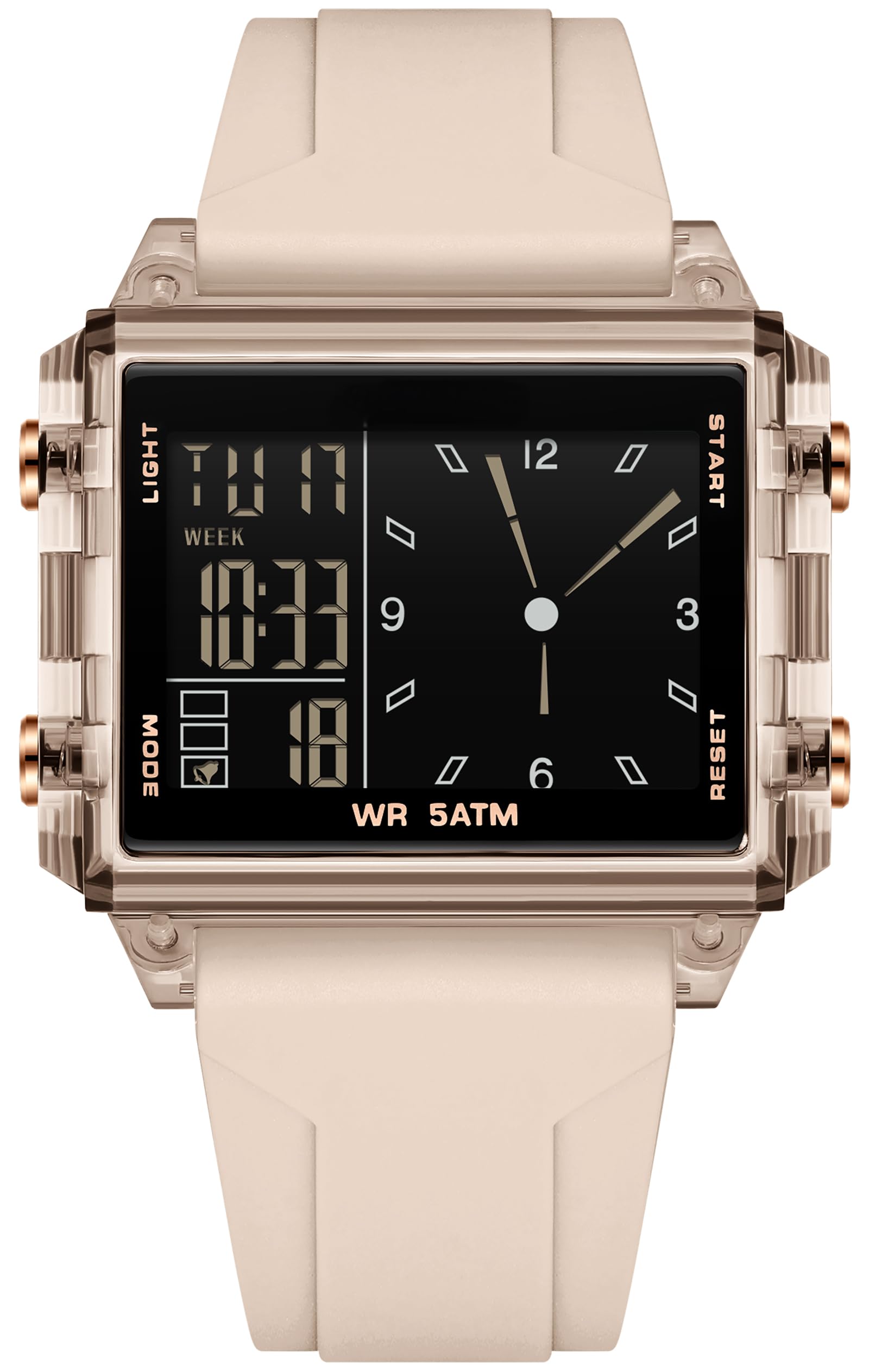 Findtime Digital Watches for Men Women Waterproof Unique Rectangle Watch Stopwatch Countdown Alarm Analog Silicone Strap Transparent Case