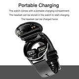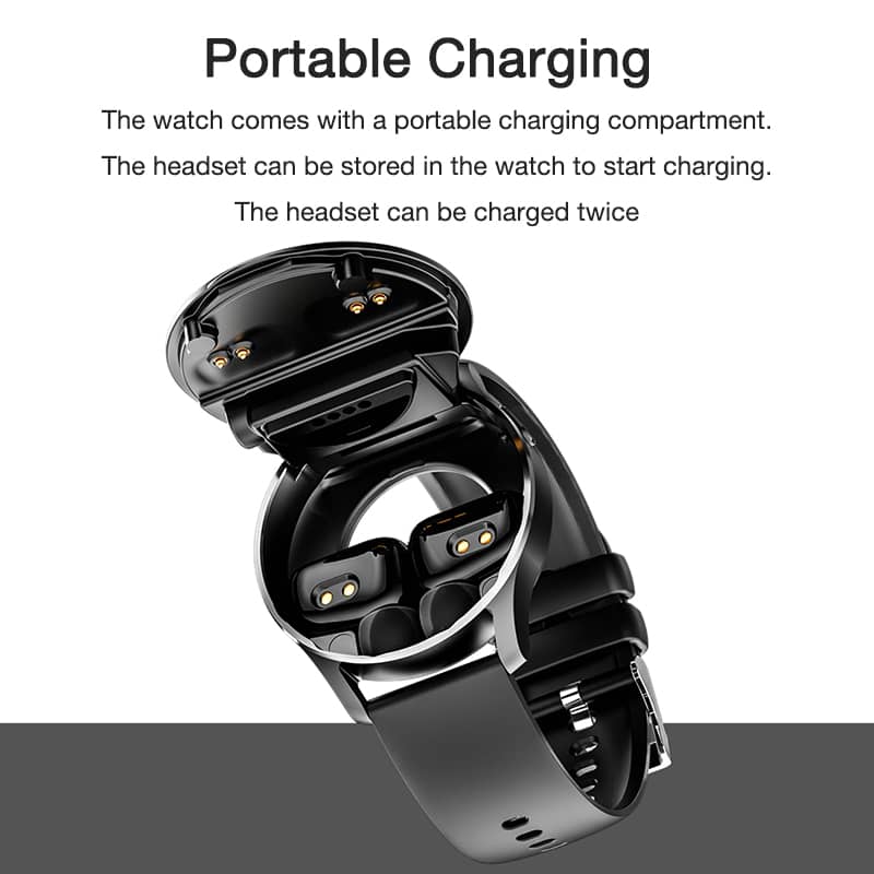 This innovative smart watch offers you 2-in-1 Brand-New experience of Smart Wearable Devices, which not only acts as a fitness tracker, but also a full-functional Bluetooth earphones. Wireless connection makes it's your perfect choice for daily activity tracking and enjoy music. TWS Bluetooth Headphone Ingenious storage In the side of the watch.