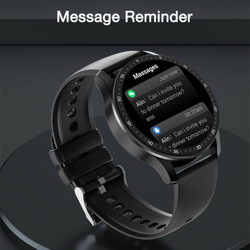 This smart watch with earbuds can contact with others when you have a phone call by Bluetooth directly. After you connect your smartwatch to your phone, you can make calls directly, using the installed microphone and loudspeaker. When a call comes in, choose to answer or reject it. When you are working out or doing housework, you can talk by raising your hand.
